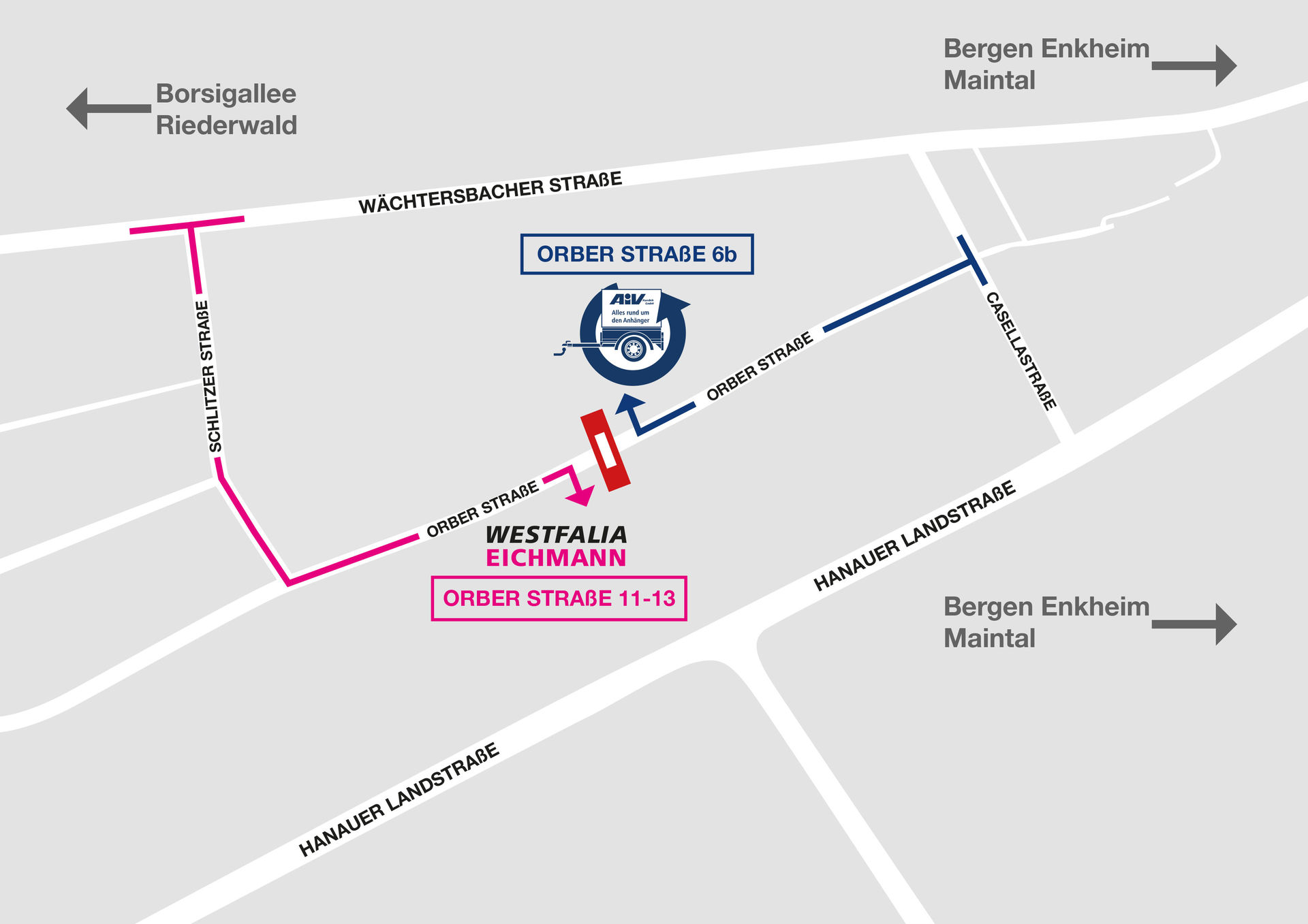 Wir empfehlen ihnen die Anfahrt über die Wächtersbacher / Schlitzer Straße.